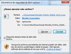3.Ejecutar el archivo de instalación del Mozilla Firefox. Seleccionar la opción Ejecutar