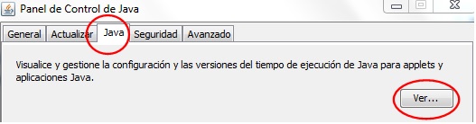 4. Escoger la pestaña Java, hacer clic en el Botón Ver