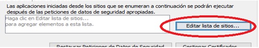 7. En la parte inferior derecha hacer clic en el botón “Editar lista de sitios”.