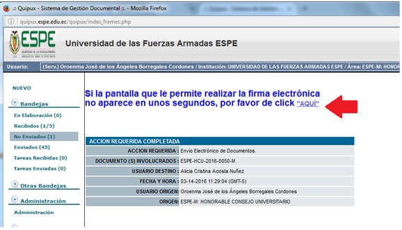 2. Ingresar al sistema de gestión documental Quipux en el siguiente link: http://quipux.espe.edu.ec