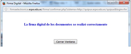 12. En el siguiente mensaje que indica que se ha realizado correctamente la firma digital en los documentos, hacer clic en “Cerrar Ventana”.