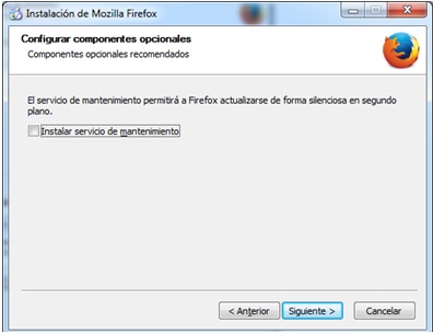 7. Desactivar la casilla “Instalar el servicio de mantenimiento” y hacer clic en siguiente.