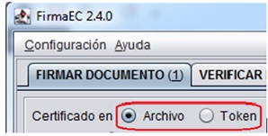 2. Seleccione el tipo de certificado de su firma electrónica. Hacer clic en “Archivo” ó “Token”.
