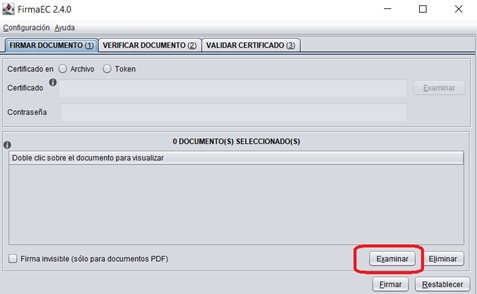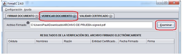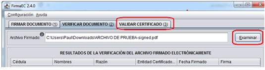 La aplicación FirmaEC permite firmar electrónicamente documentos en formato pdf, verificar documentos firmados digitalmente y validar el certificado