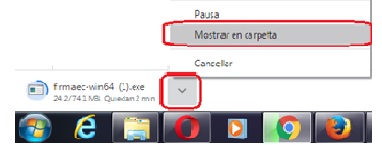 1. Luego de finalizada la descarga del archivo, hacer clic sobre el icono de la flecha que indica hacia abajo. Hacer clic en “Mostrar en Carpeta”.