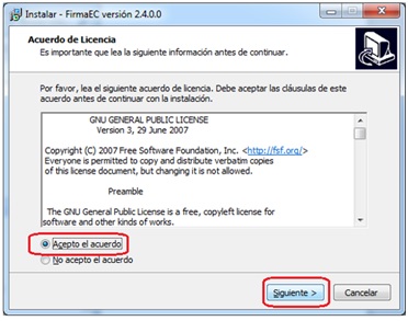 4. A continuación seleccione “Acepto el acuerdo” y hacer clic en el botón “Siguiente