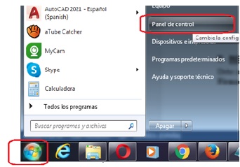 2. Verificar el sistema operativo que se encuentra instalado en su computador puede ser Windows de 32 bits o de 64 bits, para lo cual hacer un clic en el botón de inicio de Windows y luego en Panel de control.