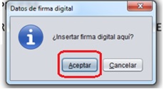 8. En la siguiente ventana emergente se solicita la confirmación para aplicar la firma. Hacer clic en “Aceptar”.