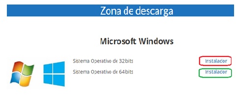 Sistema operativo de 32 bits clic sobre “Instalador” (color rojo) ó