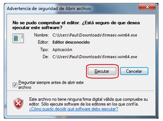 2. Abrir una ventana del explorador de archivos y hacer doble clic sobre el archivo “firmaec-win32” ó “firmaec-64