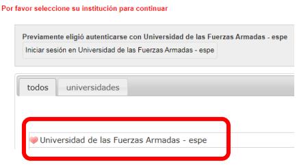 3. En la siguiente pantalla escoger la Universidad de las Fuerzas Armadas ESPE.